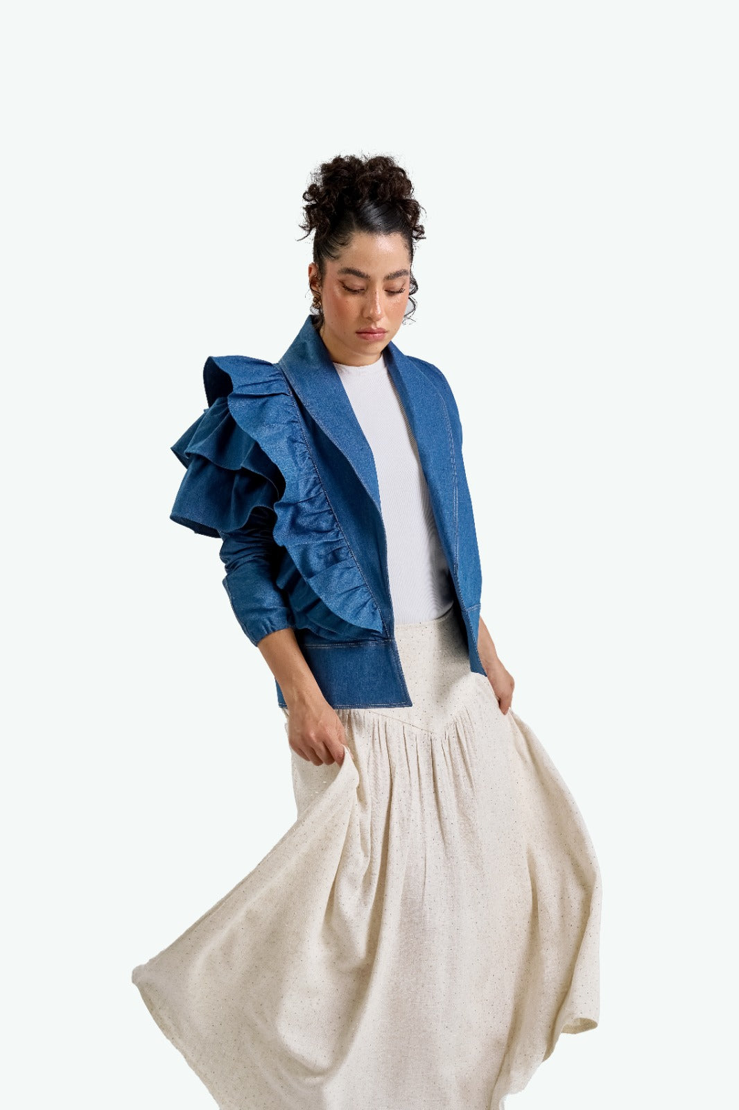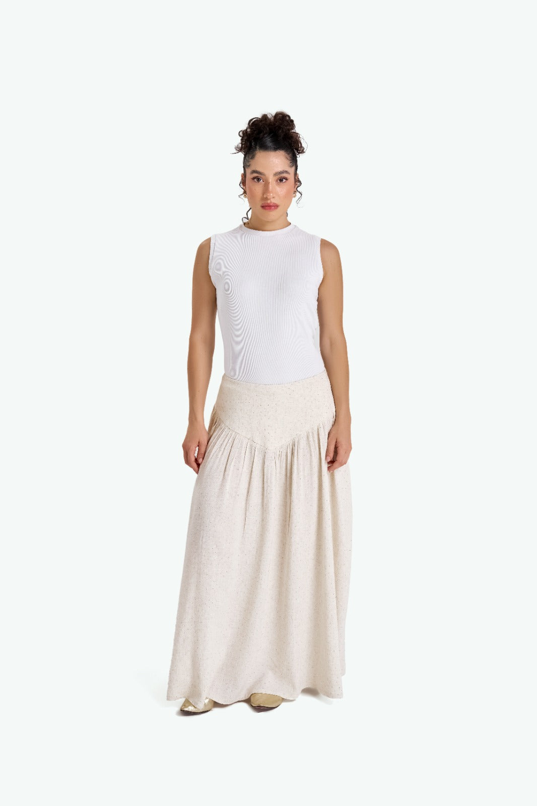 A flowy skirt with a touch of sparkle. Designed with a soft corset waist. Feminine, easy to wear, and effortlessly elegant.